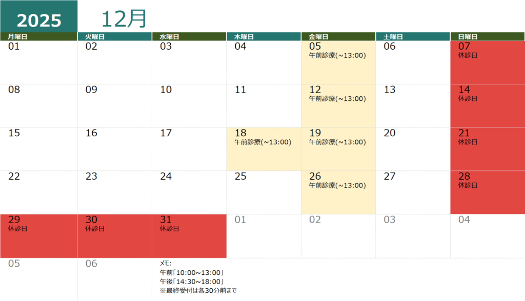 休診日のご案内