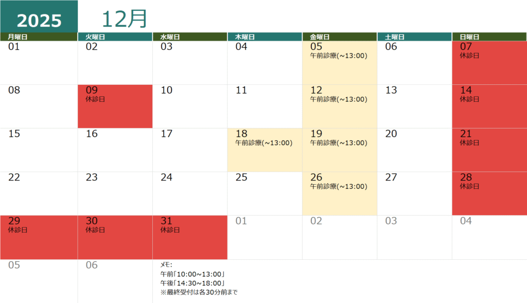 休診日のご案内